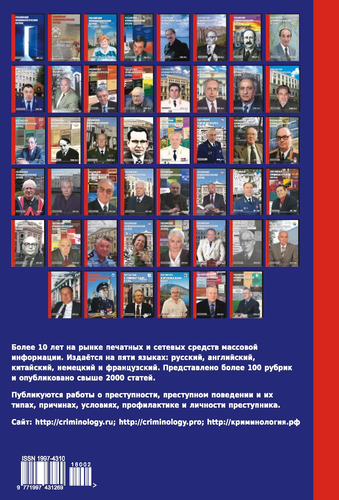 Материалы номера представляют интерес для научных и практических работников, преподавателей, аспирантов, адъюнктов, студентов и всех интересующихся проблемами борьбы с преступностью.