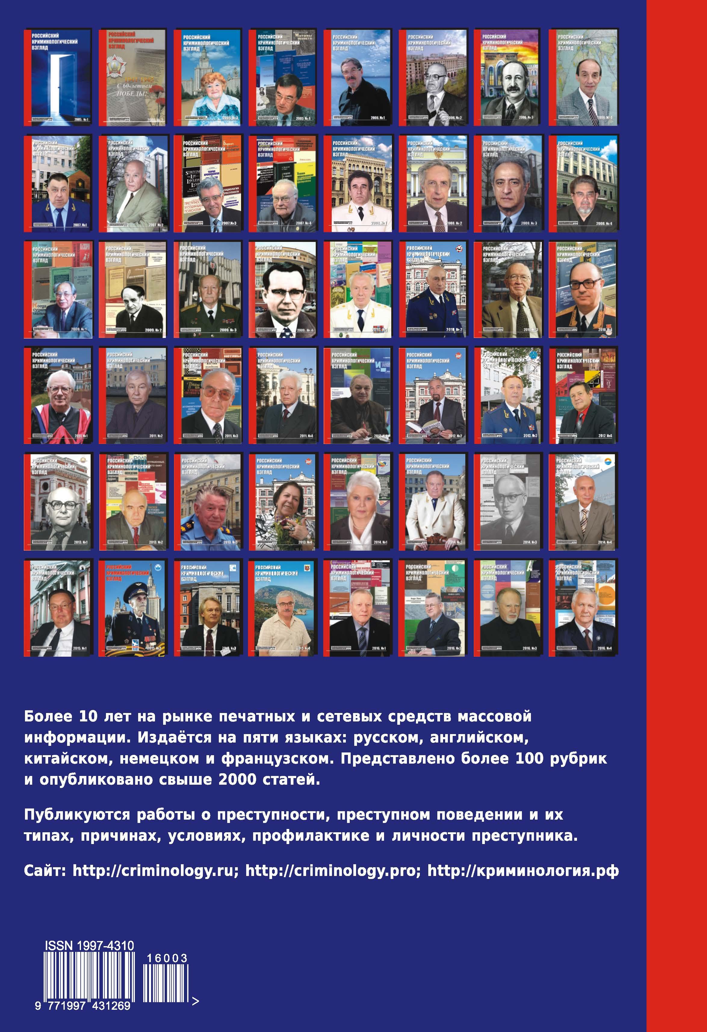 Доступен предзаказ нового номера ежеквартального научно-практического журнала «Российский криминологический взгляд» (2016. №3(47). 1000 с.), посвящённого Григорию Иосифовичу Забрянскому: http://criminology.ru/library/RKV/6912.html