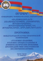 Международная научно-практическая конференция «Уголовно-правовые, уголовно-процессуальные и криминологические проблемы противодействия преступности несовершеннолетних» (Образовательный комплекс полиции Республики Армения, г. Ереван, 11-13.06.2019 г.)