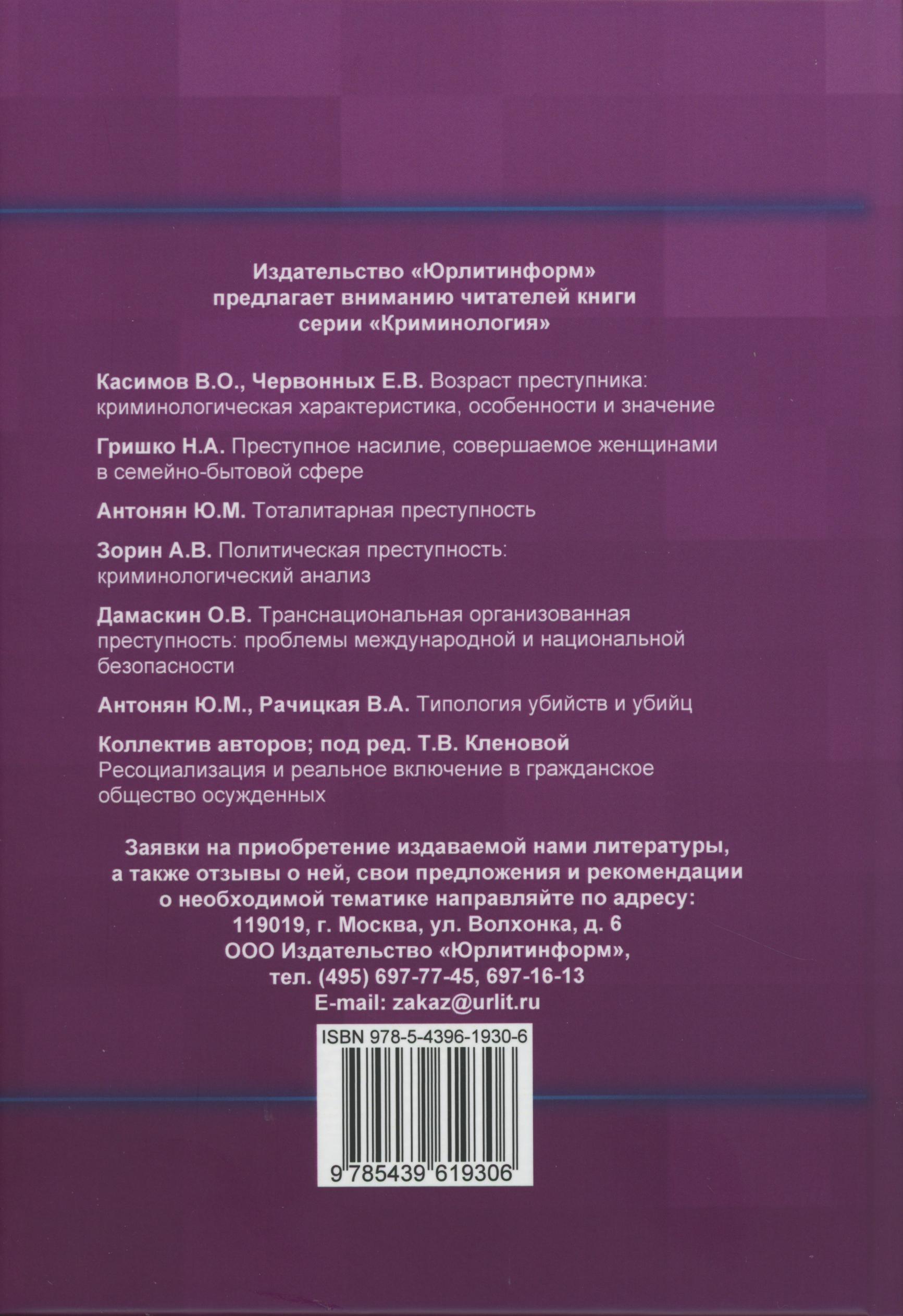 Сборник избранных лекций по криминологии / под ред. докт. юрид. наук, проф. Т. В. Пинкевич. М., 2020