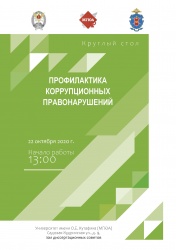 22 октября 2020 г. в ФГБОУ ВО «Московский государственный юридический университет имени О. Е. Кутафина (МГЮА)» состоялся круглый стол «Профилактика коррупционных правонарушений».