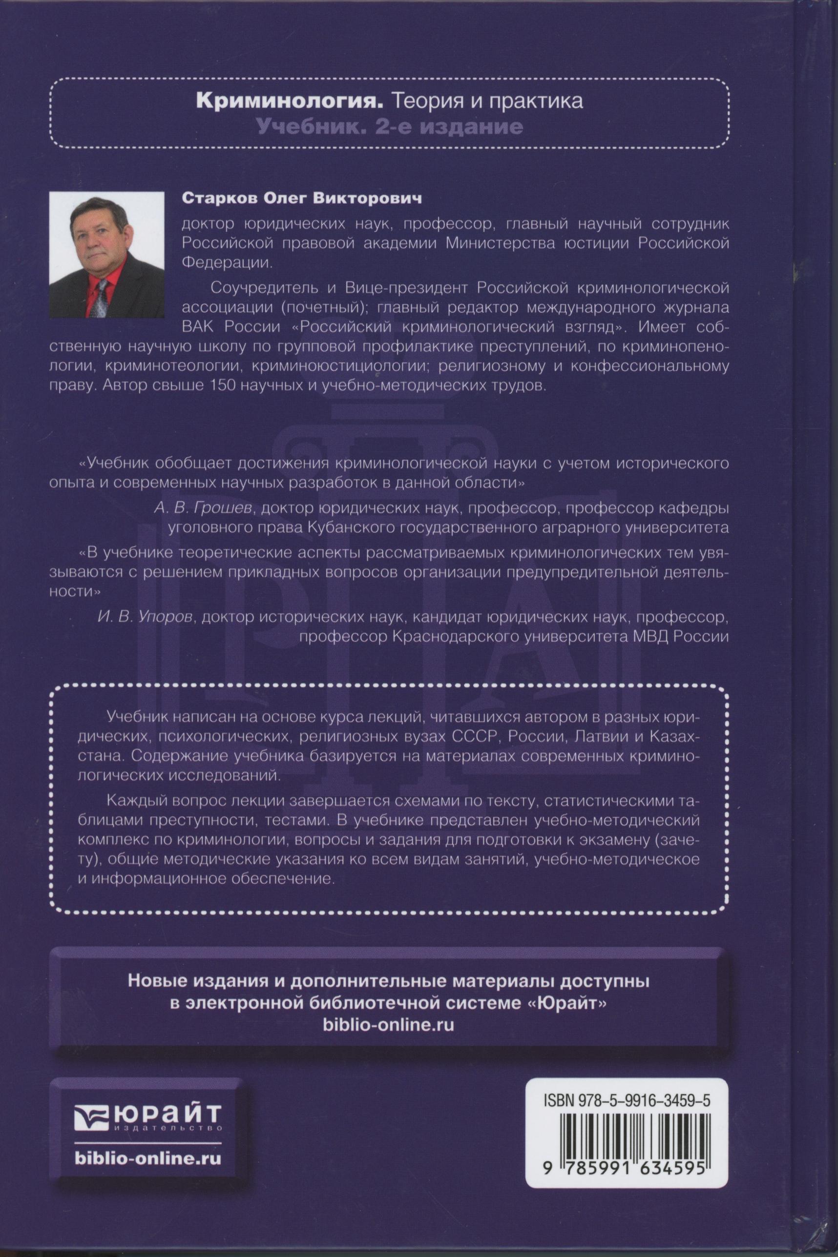 Автор издания: Старков Олег Викторович – доктор юридических наук, профессор, главный научный сотрудник Российской правовой академии Министерства юстиции РФ. Соучредитель и Вице-президент Российской криминологической ассоциации (почетный); главный редактор международного журнала ВАК России «Российский криминологический взгляд». Имеет собственную научную школу по групповой профилактике преступлений, по криминопенологии, криминотеологии, криминоюстициологии; религиозному и конфессиональному праву. Автор свыше 150 научных и учебно-методических трудов.