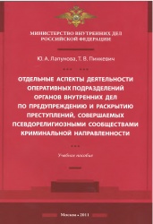 - Лапунова Ю.А., Пинкевич Т.В. Отдельные аспекты деятельности оперативных подразделений органов внутренних дел по предупреждению и раскрытию преступлений, совершаемых псевдорелигиозными сообществами криминальной направленности: учебное пособие. – М.: ДГСК МВД России, 2011. – 128 с.;