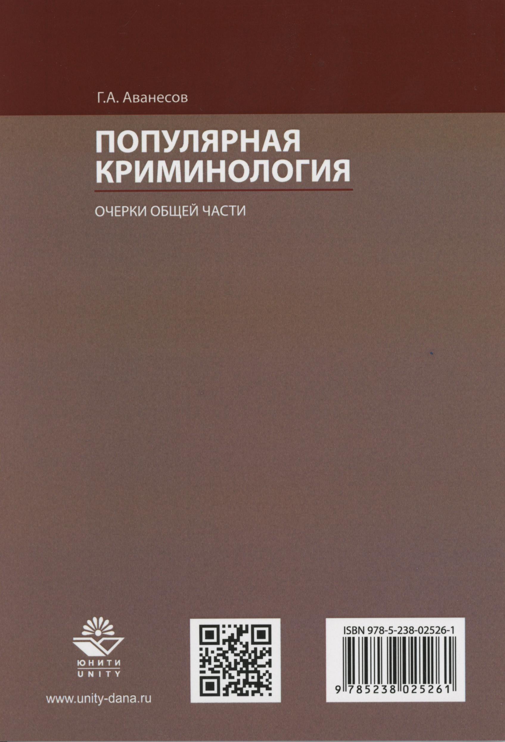 Очередное издание рекомендовано Научно-исследовательским институтом образования и науки: Аванесов Г.А. Популярная криминология. Очерки общей части: учеб. пособие для студентов вузов, обучающихся по специальности «Юриспруденция» / Г.А. Аванесов. – М.: ЮНИТИ-ДАНА: Закон и право, 2014. – 151 с.