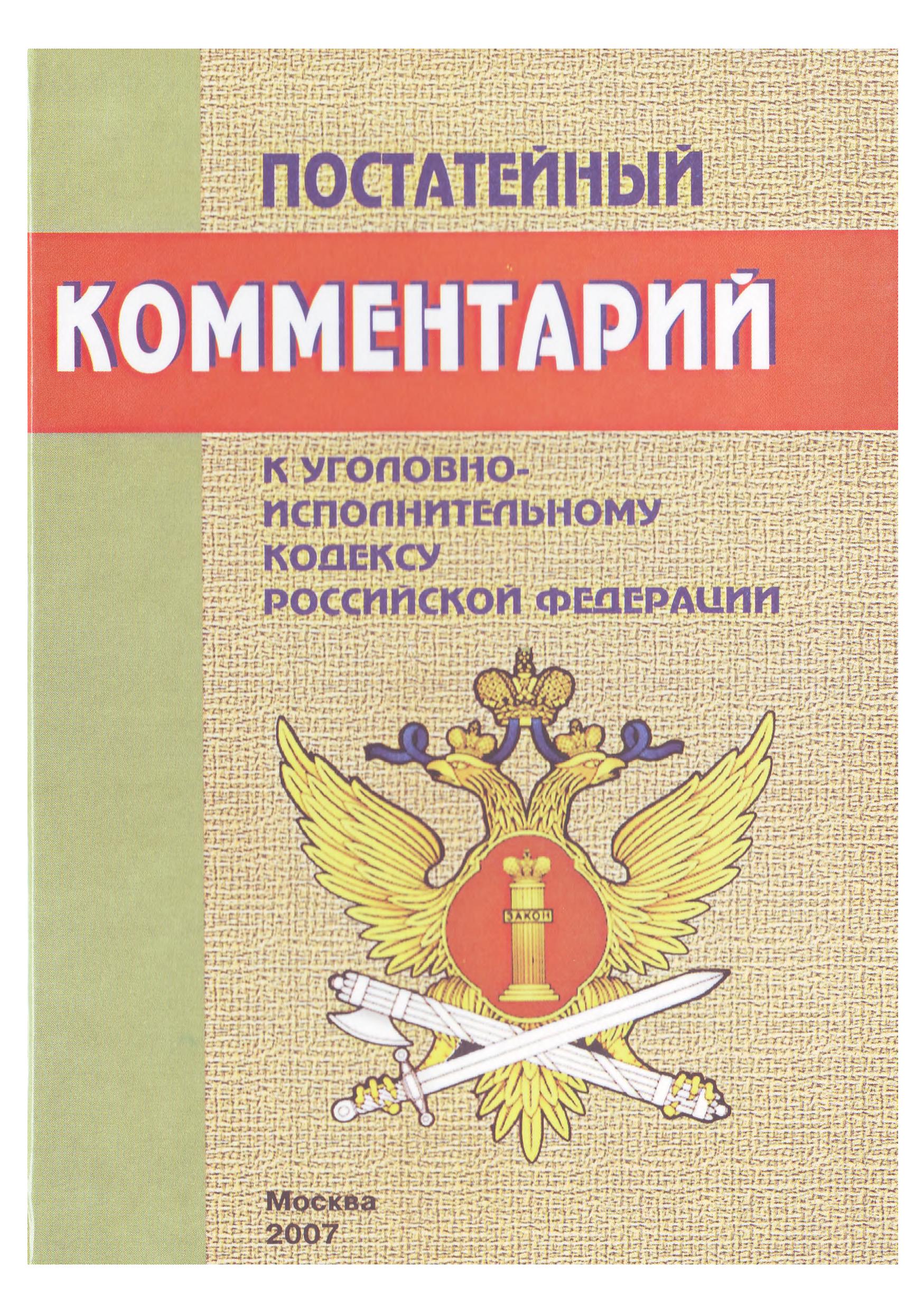 - Постатейный комментарий к Уголовно-исполнительному кодексу Российской Федерации: по состоянию на 1 сент. 2007 г.: учебное пособие для студентов высших учебных заведений, обучающихся по специальности 021100 «Юриспруденция» / под ред. Ю. И. Калинина. – М.: Илекса, 2007. – 728 с.