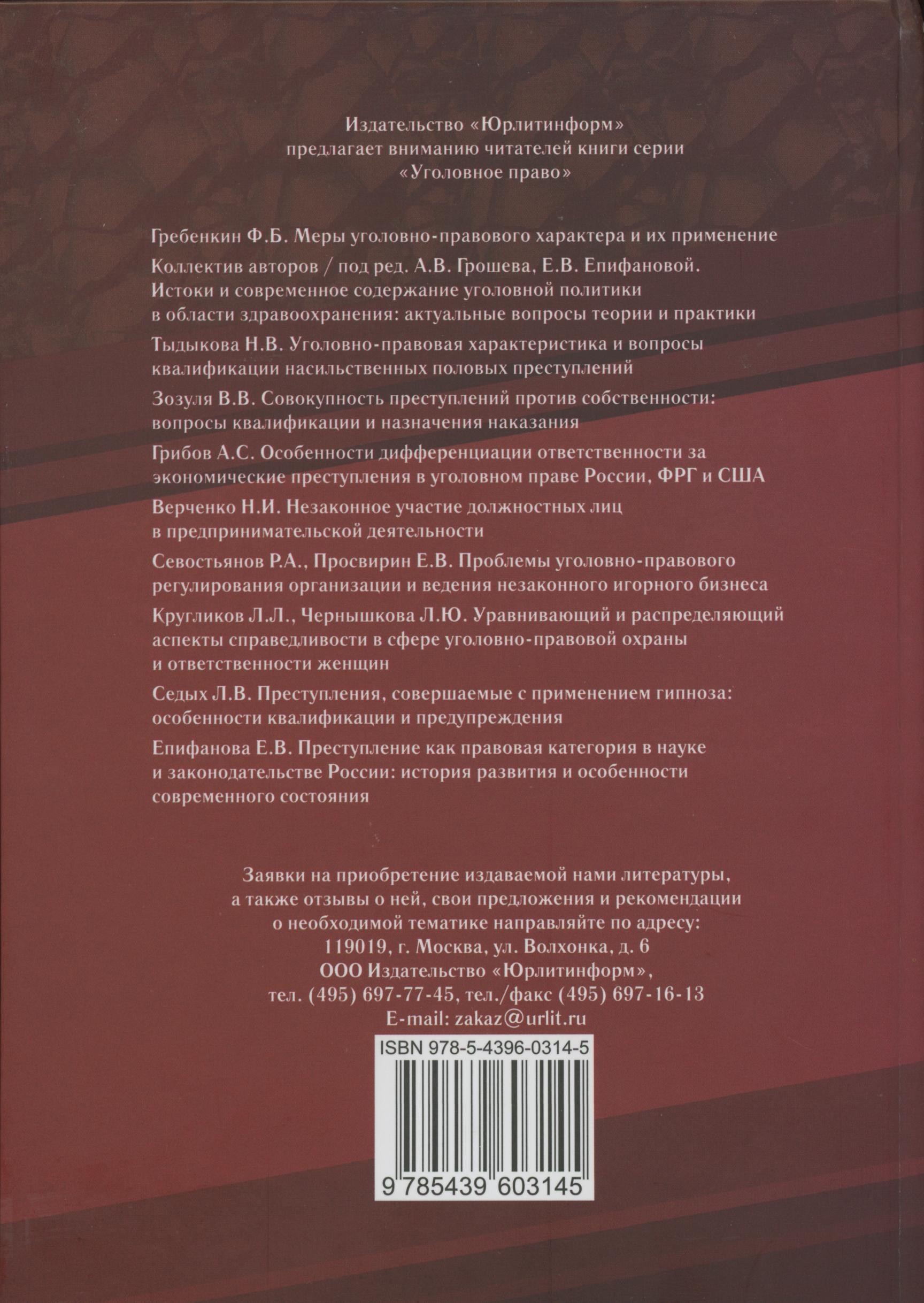 Рецензенты: В.Е. Квашис – доктор юридических наук, профессор, заслуженный деятель науки Российской Федерации, профессор кафедры уголовного права и криминологии Российской правовой академии Министерства юстиции Российской Федерации; А.И. Чучаев – доктор юридических наук, профессор кафедры уголовного права МГЮА (Университет имени О.Е. Кутафина), профессор.