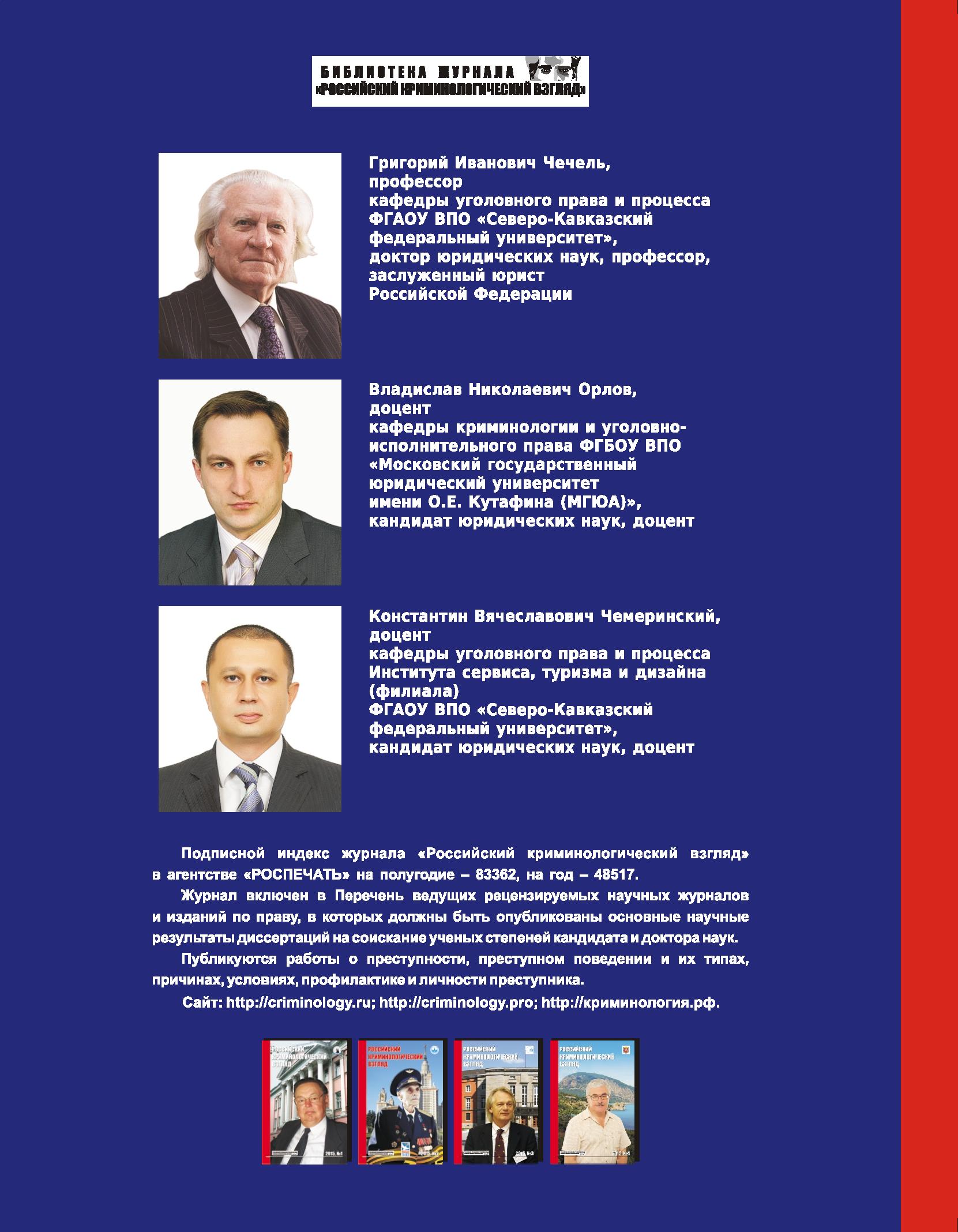 Доступен для предзаказа новый учебник по уголовному праву – Российское уголовное право. Общая и Особенная части: учебник / под ред. Г. И. Чечеля, В. Н. Орлова, К. В. Чемеринского. – М., 2015.