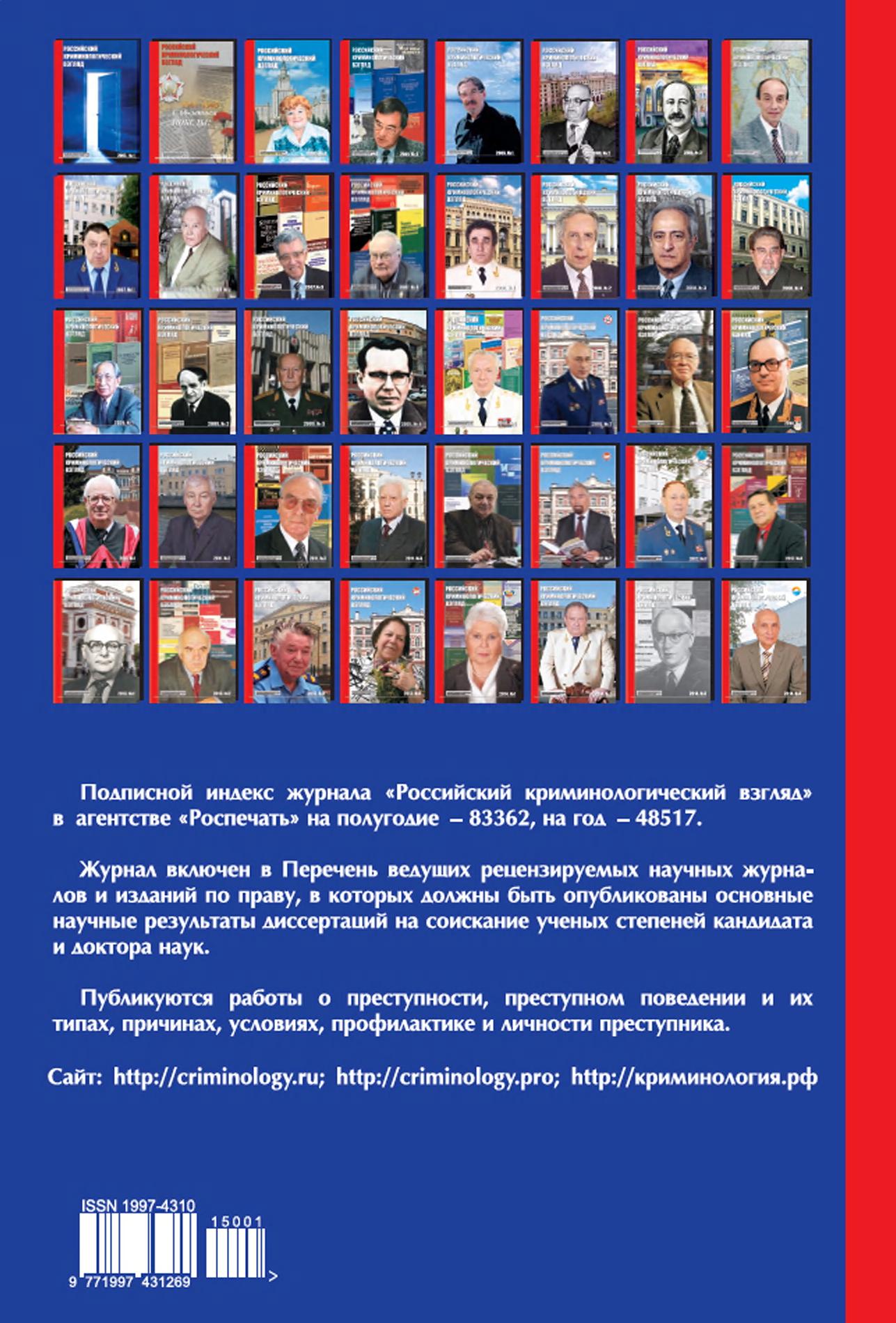 2. Щедрин Н. В., Зырянова И. А. Тесты по криминологии (Общая часть) // Российский криминологический взгляд. 2015. №1. С.407-411.