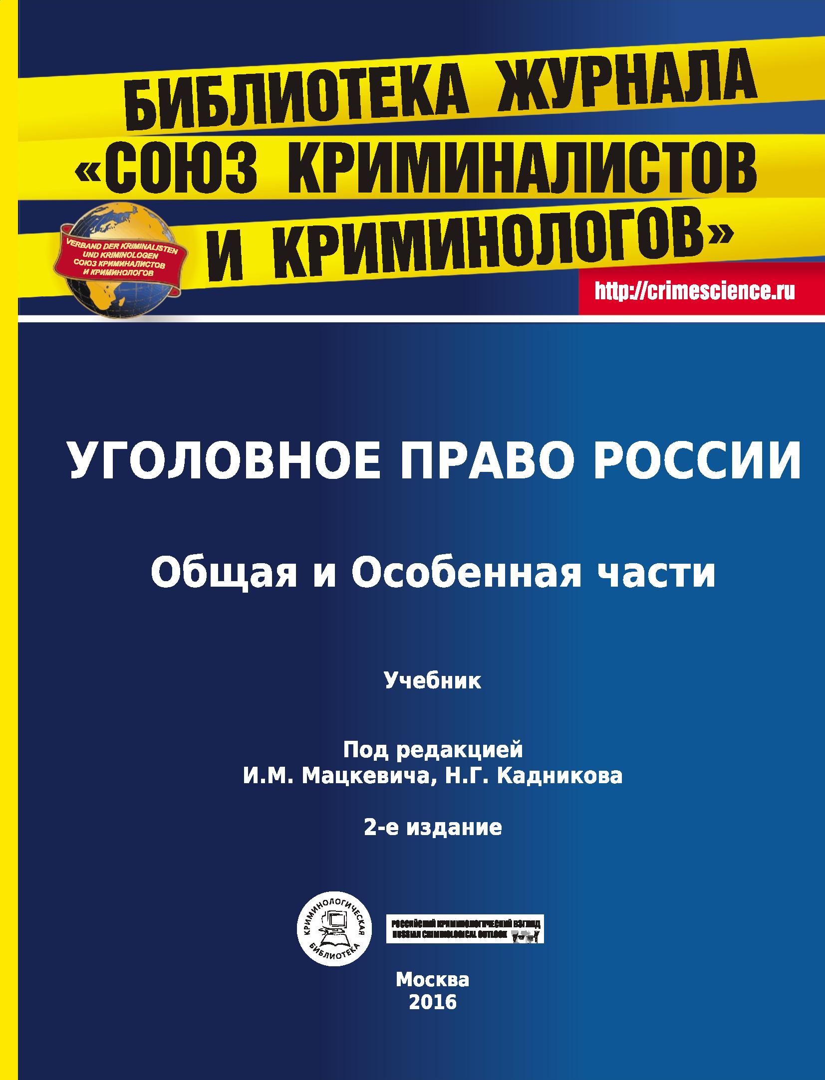- Уголовное право России. Общая и Особенная части: учебник / под ред. И. М. Мацкевича, Н. Г. Кадникова. 2-е изд., перераб. и доп. М.: Союз криминалистов и криминологов, Криминологическая библиотека, Российский криминологический взгляд, 2016.