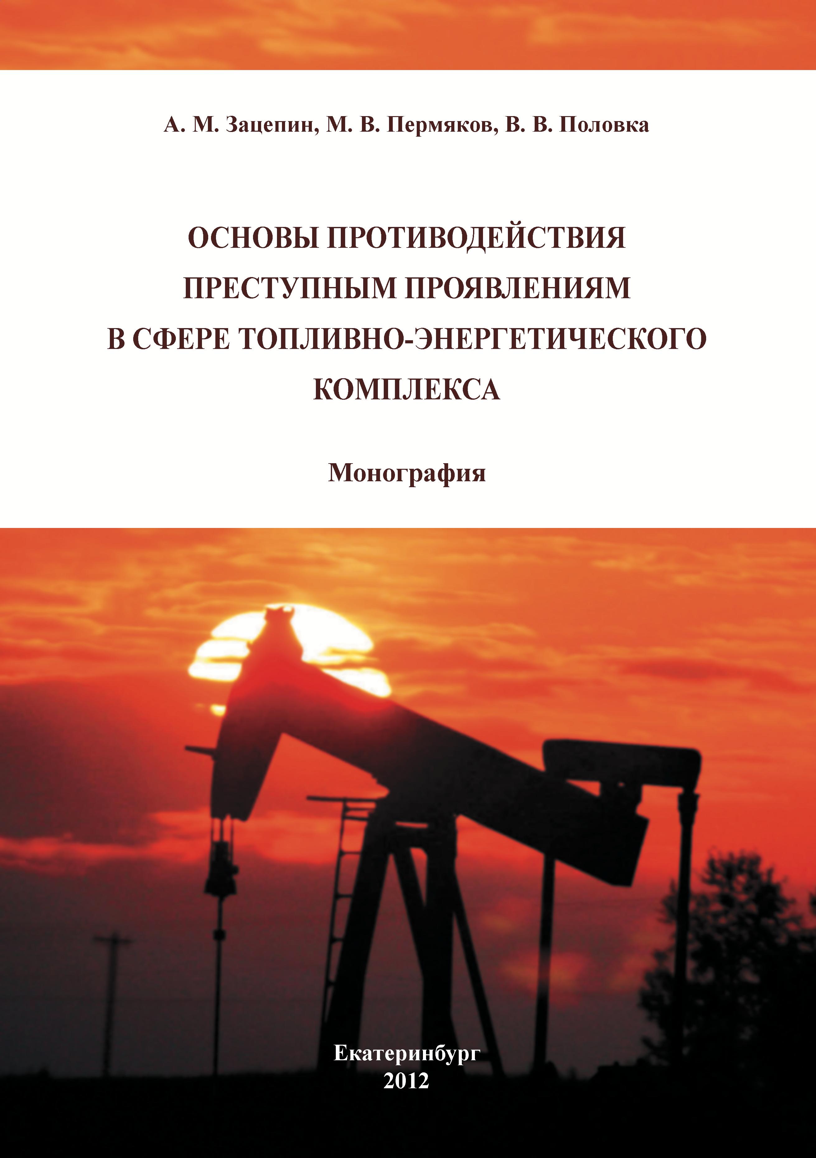- Зацепин А. М., Пермяков М. В., Половка В. В. Основы противодействия преступным проявлениям в сфере топливно-энергетического комплекса: монография. Екатеринбург: Издательский Дом "Ажур", 2012. 100 с. URL: http://criminology.ru/library/monograph/5138.html