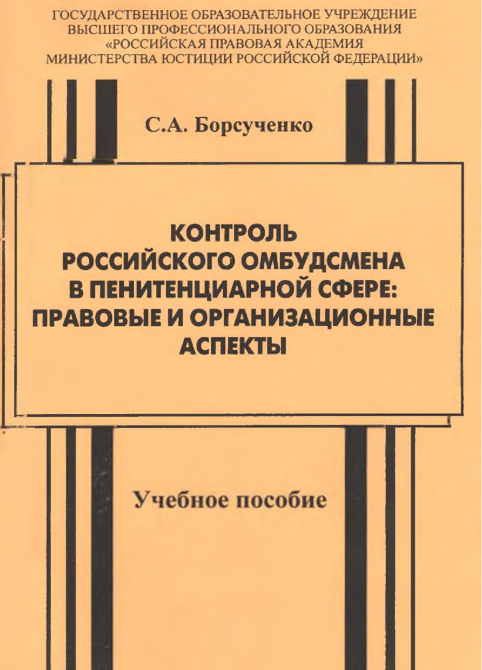 - Борсученко С. А. Контроль российского омбудсмена в пенитенциарной сфере: учеб. пособие. М.: ГОУ ВПО РПА Минюста России, 2007. 140 с. URL: http://криминология.рф/library/benefits/5186.html