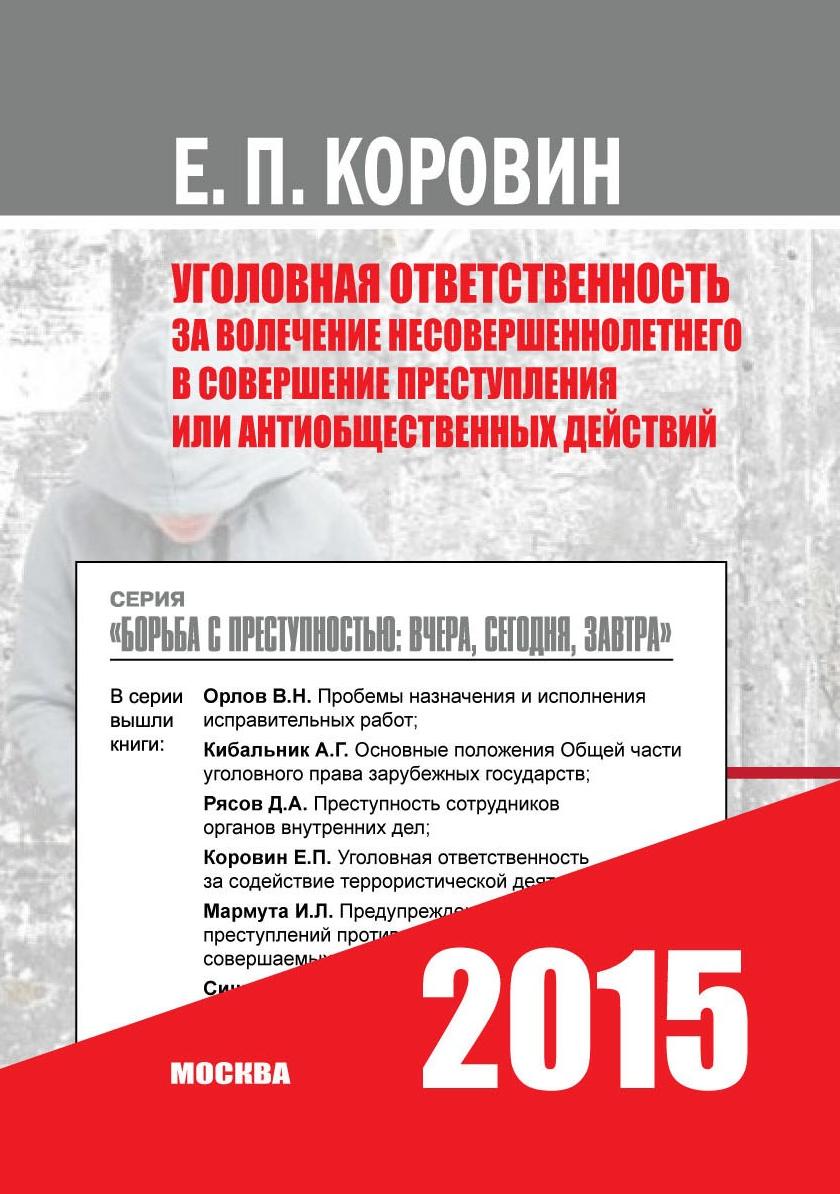 - Коровин Е. П. Уголовная ответственность за вовлечение несовершеннолетнего в совершение преступления или антиобщественных действий: учебное пособие. М.: Илекса, 2015. 96 с. URL: http://criminology.ru/library/benefits/5209.html