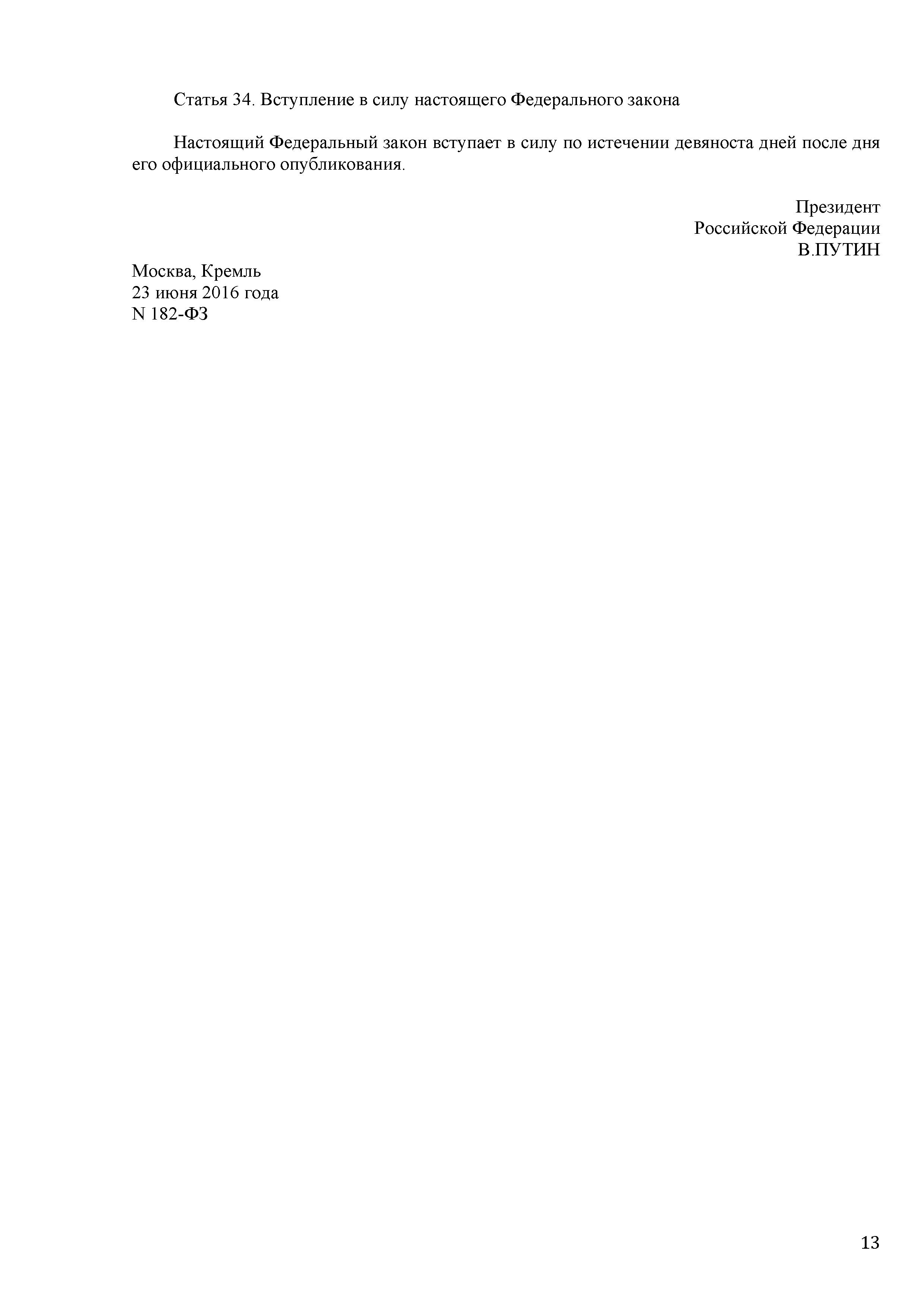 Федеральный закон от 23.06.2016 г. №182-ФЗ «Об основах системы профилактики правонарушений в Российской Федерации»