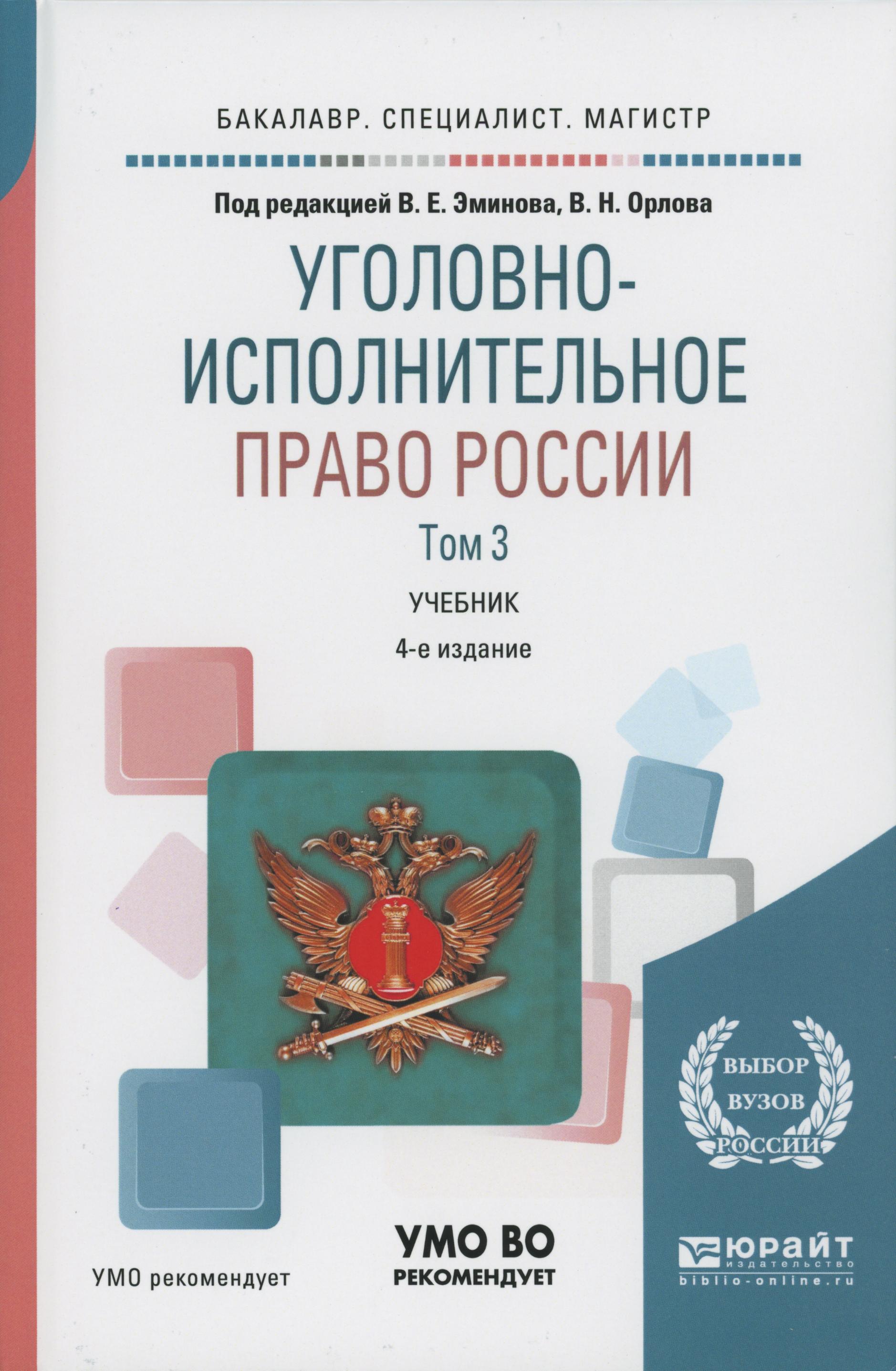 Уголовно-исполнительное право России. В 3 т. Том 1. Общая часть: учебник для бакалавриата, специалитета и магистратуры / под ред. В. Е. Эминова, В. Н. Орлова. – 4-е изд., перераб. и доп. – М.: Издательство Юрайт, 2018. – 300 с. – (Серия: Бакалавр. Специалитет. Магистр). – http://criminology.ru/advertisement/uchebniki/7632/