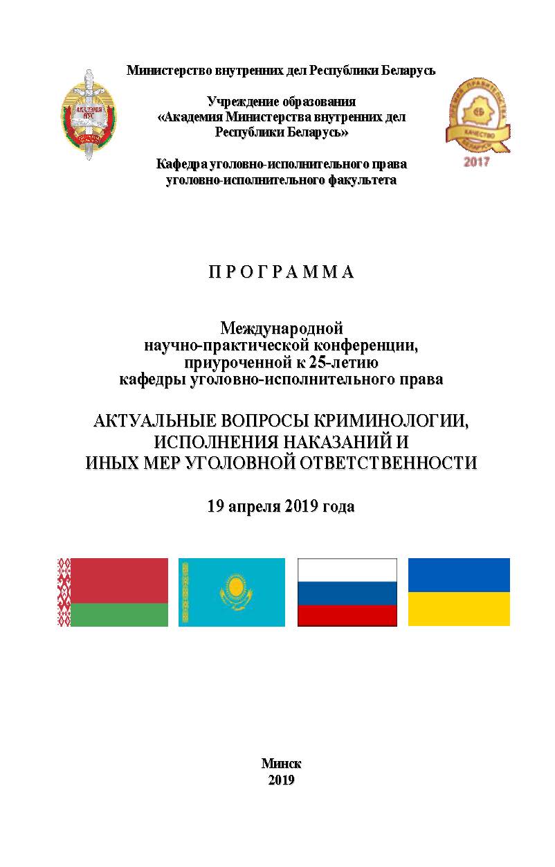 19 апреля 2019 г. в Академии Министерства внутренних дел Республики Беларусь состоялась международная научно-практическая конференция, приуроченная к 25-летию кафедры уголовно-исполнительного права.